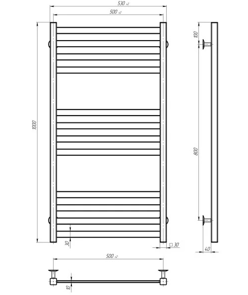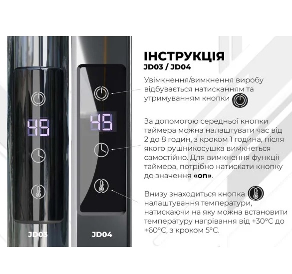 Електрична сушарка для рушників Deffi Avast П12 500х1000 праве підключення JD04 чорний B.AV.100.50.12.E.B.R.2