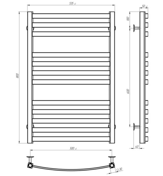 Електрична сушарка для рушників Deffi Adriana П12 500х800 правильне підключення JD04 чорний B.AR.80.50.12.E.B.R.2