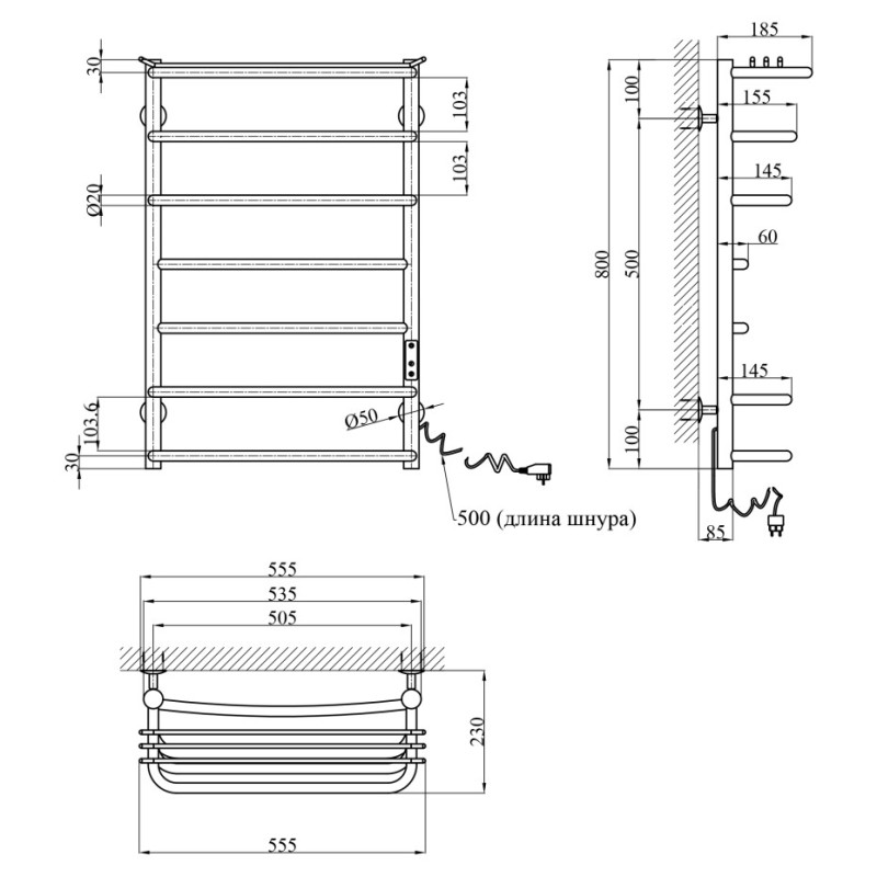 Електрична сушарка для рушників Kroner KRP Stern ST-ER80x50-7 55,5х80 см нержавіюча сталь CV036331