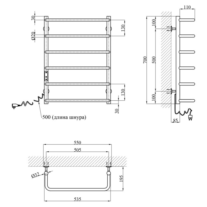 Електрична сушарка для рушників Kroner KRP Stil STL-EL70x50-6 55х70 см нержавіюча сталь CV036342