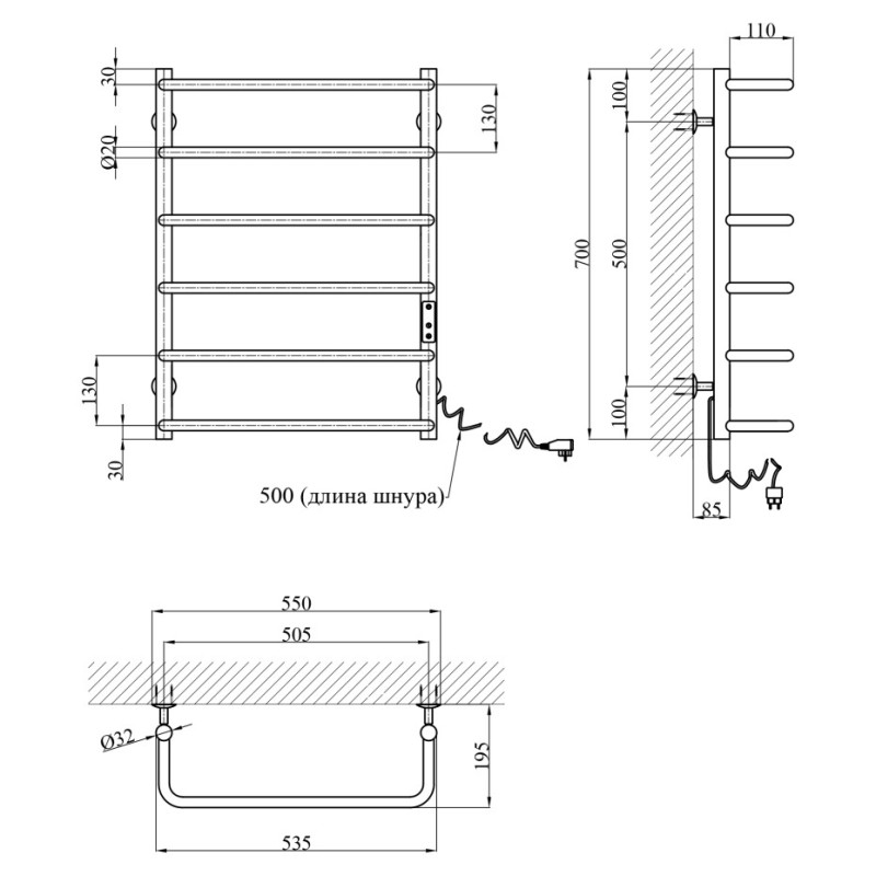 Електрична сушарка для рушників Kroner KRP Stil STL-ER70x50-6 55х70 см нержавіюча сталь CV036343
