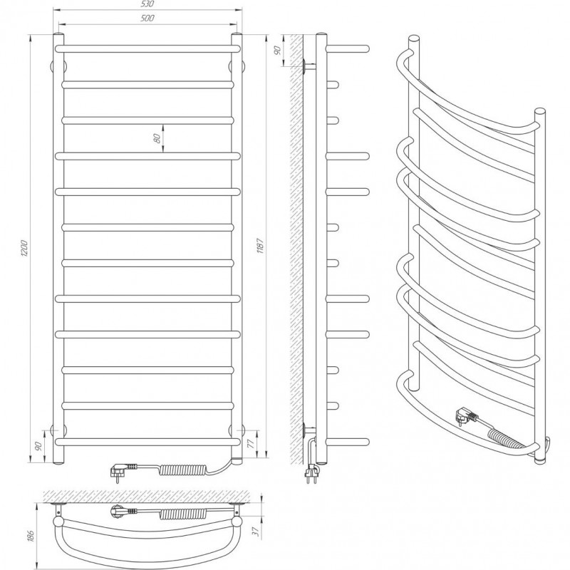 Електрична сушарка для рушників Laris Євромікс П12 500x1200 Е сенсор S3 (підключення праворуч) хром 73207689
