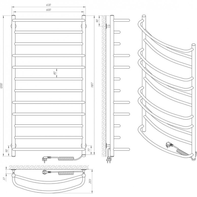 Електрична сушарка для рушників Laris Євромікс П12 600x1200 Е сенсор S3 (підключення праворуч) хром 73207691