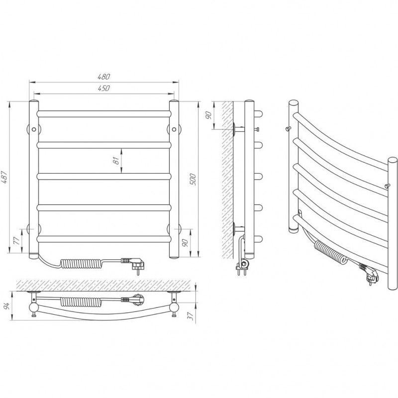 Електрична сушка для рушників Laris Класік П5 450х500 мм Е сенсор S3 левый хром