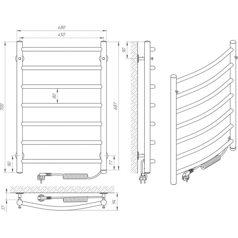Електрична сушка для рушників Laris Класік П7 450х700 мм Е сенсор S3 правий хром