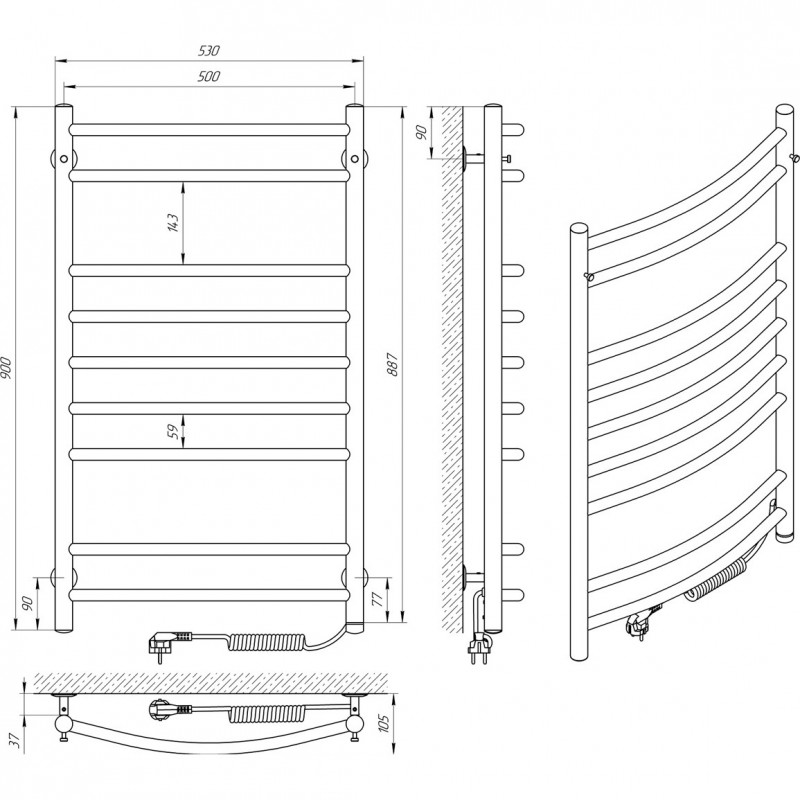 Електрична сушка для рушників Laris Класік П9 500х900 мм Е сенсор S3 правий хром