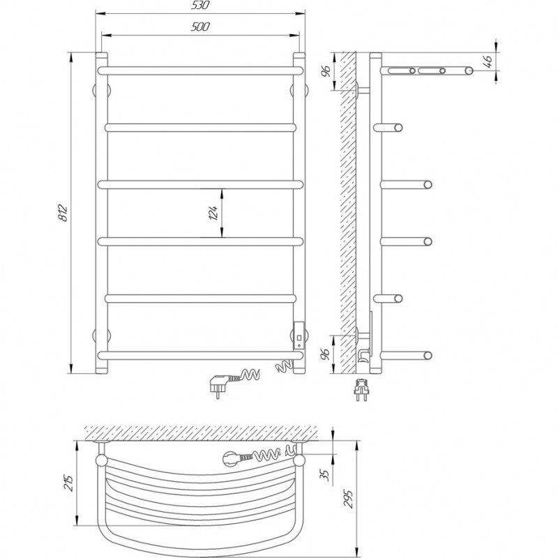 Електрична сушка для рушників Laris Єврофлеш П6 500х800 мм Е з полицею правий хром