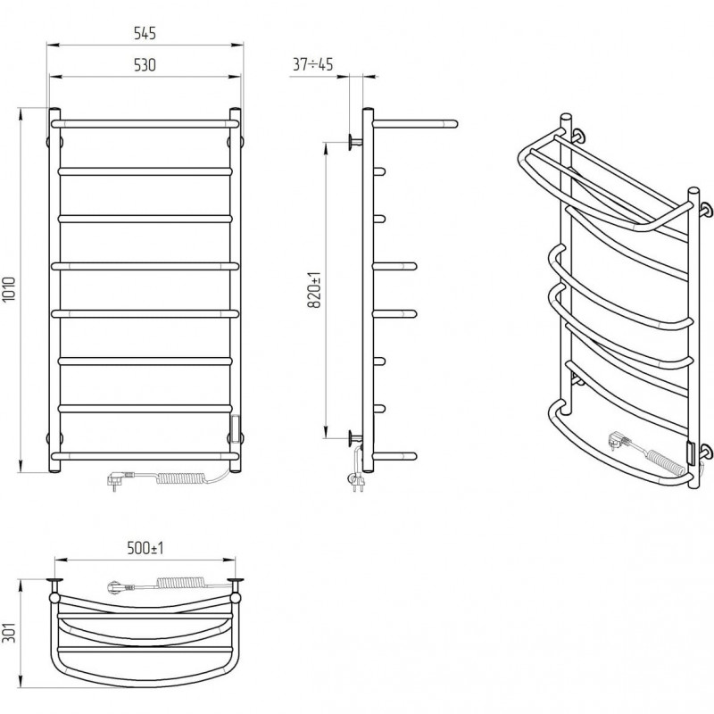 Електричний сушка для рушників Laris Єврофлеш П8 500х1000 мм Е з полицею правий хром
