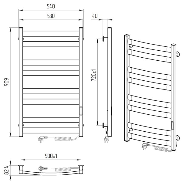 Керує нагріванням рушникосушарки мікропроцесорний термоконтролер (кнопкове керування). Для початку роботи необхідно задати температуру рушникосушарки. Термодатчик контролює температуру поверхні рушникосушарки,що виключає його перегрів. Серед переваг регулятора - збереження обраного режиму роботи (при відключенні робота відновиться у запрограмованому користувачем режимі), наявність таймера відключення (3h) та колірної індикації роботи!