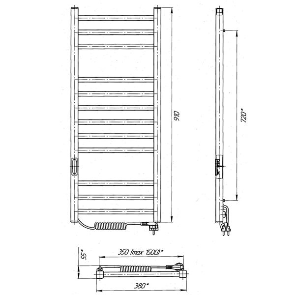 Керує нагріванням рушникосушарки мікропроцесорний термоконтролер (кнопкове керування). Для початку роботи необхідно задати температуру рушникосушарки. Термодатчик контролює температуру поверхні рушникосушарки,що виключає його перегрів. Серед переваг регулятора - збереження обраного режиму роботи (при відключенні робота відновиться у запрограмованому користувачем режимі), наявність таймера відключення (3h) та колірної індикації роботи!