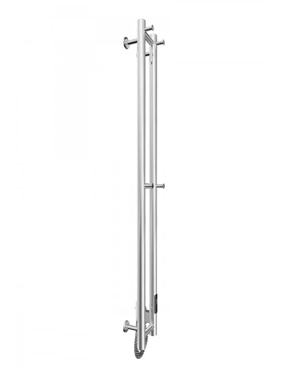 Полотенцесушитель оснащений роз'ємом, що дозволяє підключатися до розетки з будь-якого боку. Набір для прихованого монтажу входить. Конструкція включає в себе дві горизонтальні поперечини і вертикальні стійки з круглої полірованої нержавіючої сталі без хромування. Потужність приладу 65 Вт. Гарантійний термін: 20 років на корпус і 5 років наелектроніка.