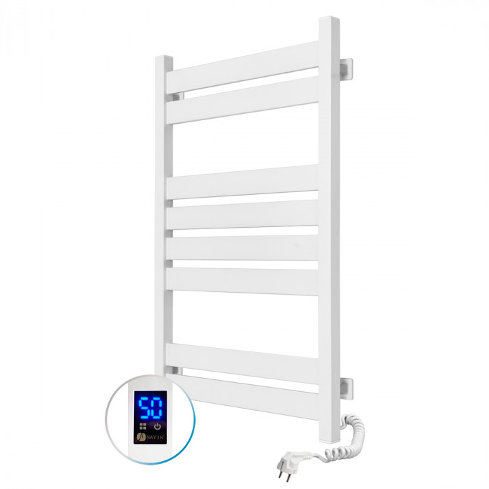 Електричні сушки для рушників NAVIN Largo — яскравий зразок мінімалізму. Дизайн представляє просту, строгу і безмежно привабливу геометричну гармонію. Виготовлені з нержавіючої сталі, яка стійка до подряпин та механічних пошкоджень, має високу антикорозійну стійкість і має надійне порошкове покриття. Модель має бічні колектори (стійки), виконані з профільної квадратної труби 30х30 мм, а перемички з прямокутних трубок 50х10 мм. Модель оснащена зручним та простим у налаштуванні сенсорним терморегулятором Sensor із вбудованою функцією таймера