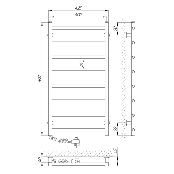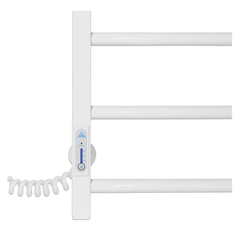 Особливості: управляє нагрівом електрополотенцесушітеля мікропроцесорний термоконтроллер (кнопкове управління). Для початку роботи необхідно задати температуру полотенцесушителя. Термодатчик контролює температуру поверхні рушникосушки, що виключає його перегрів. Серед переваг регулятора - зберігання обраного режиму роботи (привідключенні робота відновитися в запрограмованому користувачем режимі), наявність таймера відключення (3h) і колірної індикації роботи!