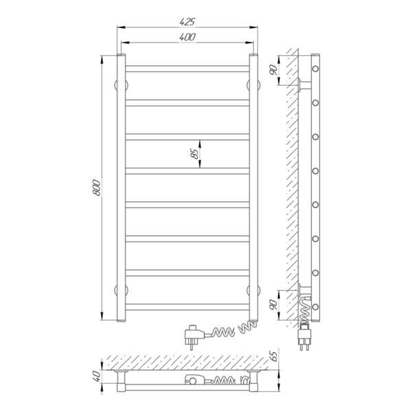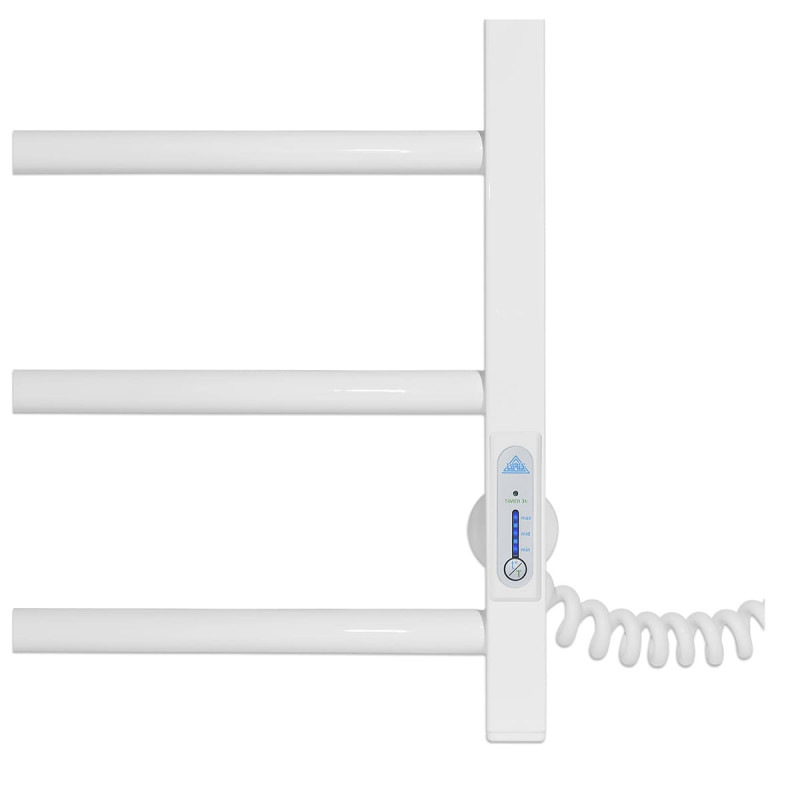 Особливості: управляє нагрівом електрополотенцесушітеля мікропроцесорний термоконтроллер (кнопкове управління). Для початку роботи необхідно задати температуру полотенцесушителя. Термодатчик контролює температуру поверхні рушникосушки, що виключає його перегрів. Серед переваг регулятора - зберігання обраного режиму роботи (привідключенні робота відновитися в запрограмованому користувачем режимі), наявність таймера відключення (3h) і колірної індикації роботи!