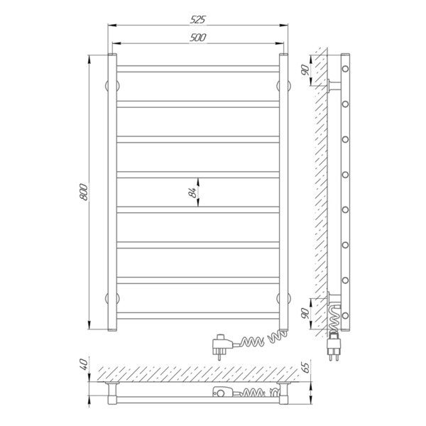 Електричний полотенцесушитель Laris ЗЕБРА АЛЬФА ЧК8 500х800 Е (підключення праворуч) білий