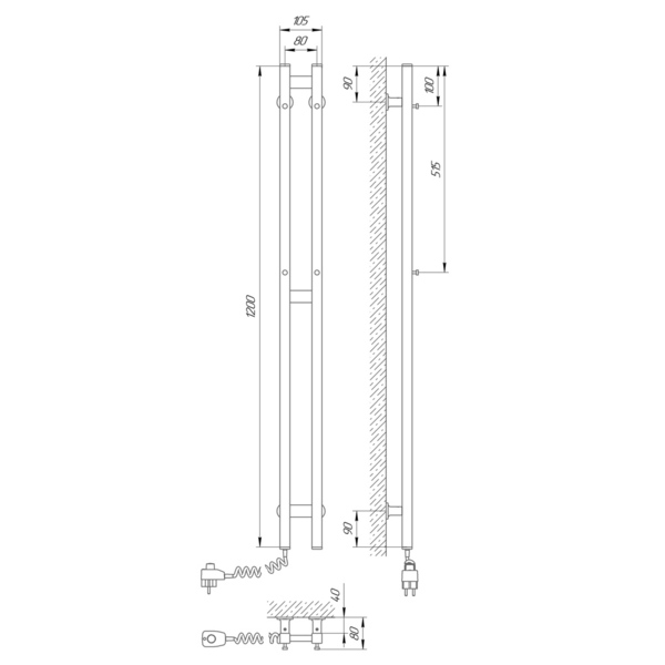 Електричний полотенцесушитель Laris ЗЕБРА ДУЕТ 80Х1200 Е (підключення зліва) білий