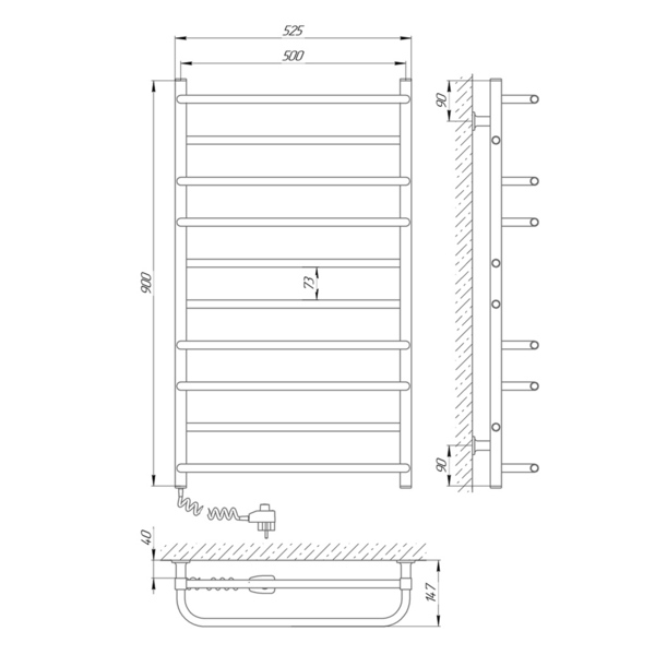 Особливості: управляє нагрівом електрополотенцесушітеля мікропроцесорний термоконтроллер (кнопкове управління). Для початку роботи необхідно задати температуру полотенцесушителя. Термодатчик контролює температуру поверхні рушникосушки, що виключає його перегрів. Серед переваг регулятора - зберігання обраного режимуроботи (при відключенні робота відновитися в запрограмованому користувачем режимі), наявність таймера відключення (3h) і колірної індикації роботи!