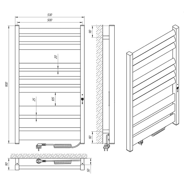 Особливості: управляє нагрівом електрополотенцесушітеля мікропроцесорний термоконтроллер. Для початку роботи необхідно задати температуру полотенцесушителя. Додатково можна вмикати / вимикати нагрів, програмно знижувати потужність до 50%. Термостат контролює температуру поверхнірушникосушки, що виключає його перегрів. Витримує напругу 1500 В змінного струму / хвилину. Є зручна функція блокування кнопок від дітей.