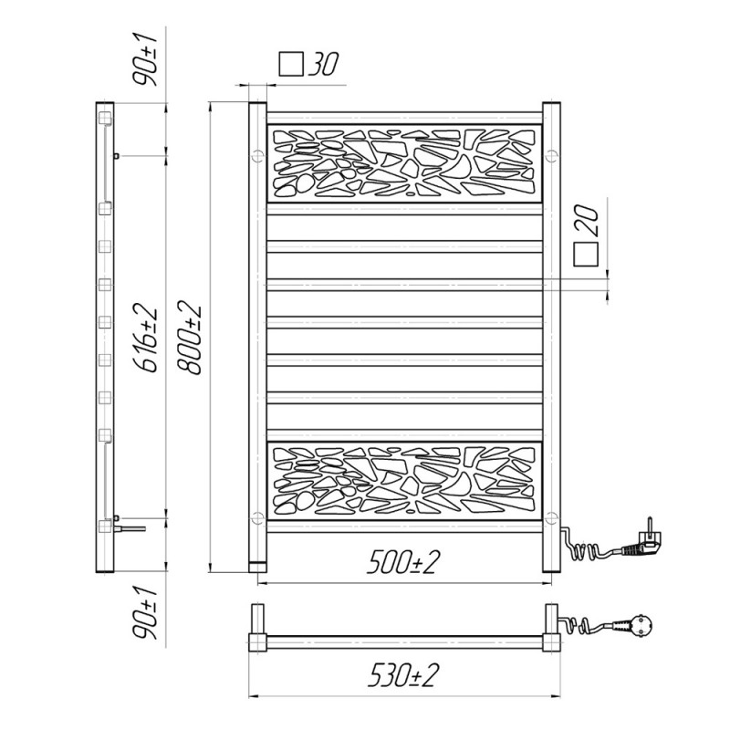 Електричний полотенцесушитель Mario Анталія-І TR 800х530/500 нержавіюча сталь 4820111355716