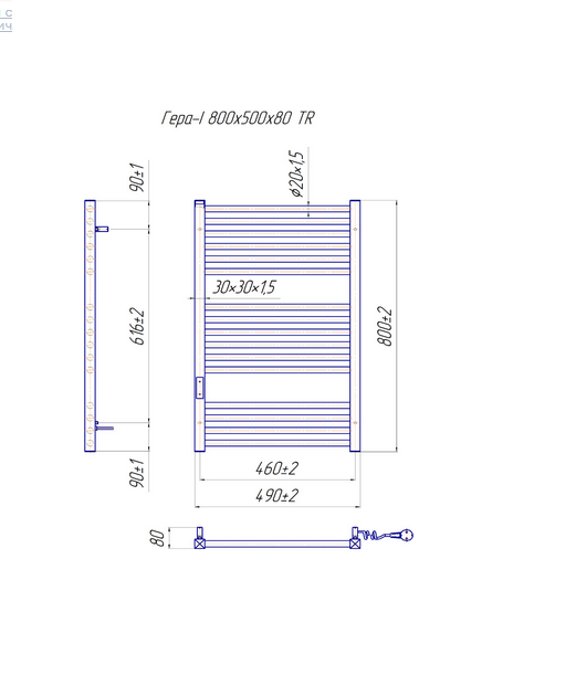Електричний полотенцесушитель Mario Гера-I TR 800x500 / 80 праве підключення