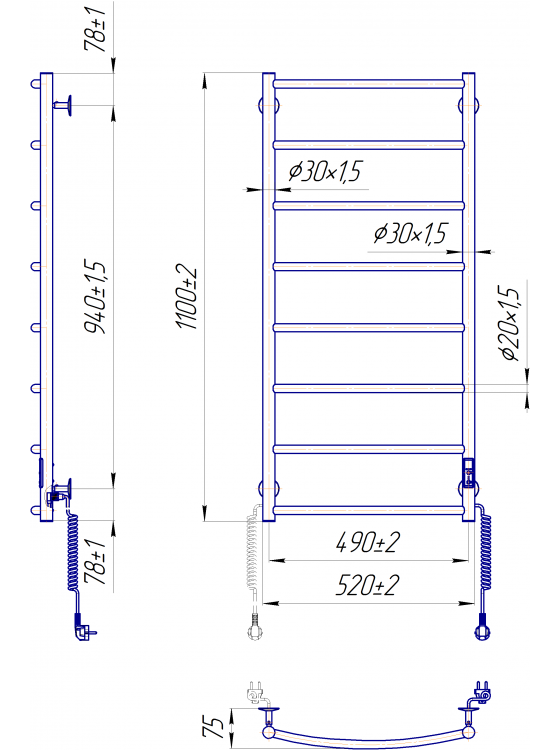 Інноваційна система - коннектор (підключення до розетки). Замість звичного шнура з фіксатором в конструкції вироби присутні роз'єми на обох стійках, що дозволяють підключити полотенцесушитель до мережі з будь-якого боку.