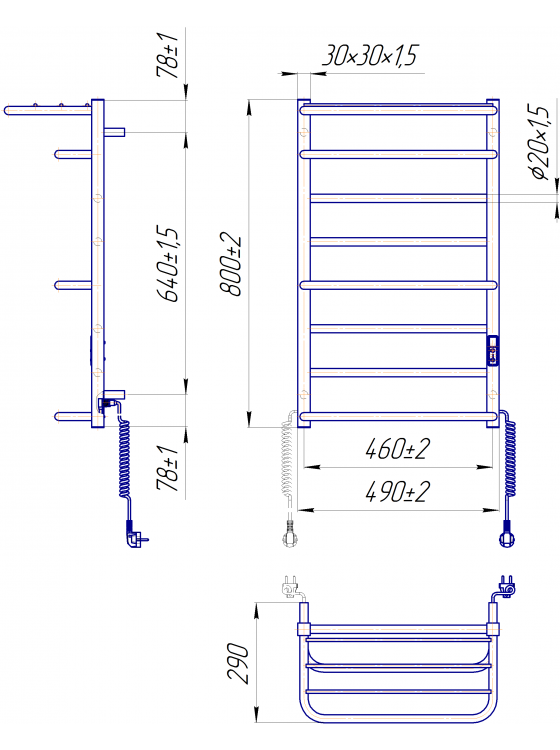 Інноваційна система - коннектор (підключення до розетки). Замість звичного шнура з фіксатором в конструкції вироби присутні роз'єми на обох стійках, що дозволяють підключити полотенцесушитель до мережі з будь-якого боку.