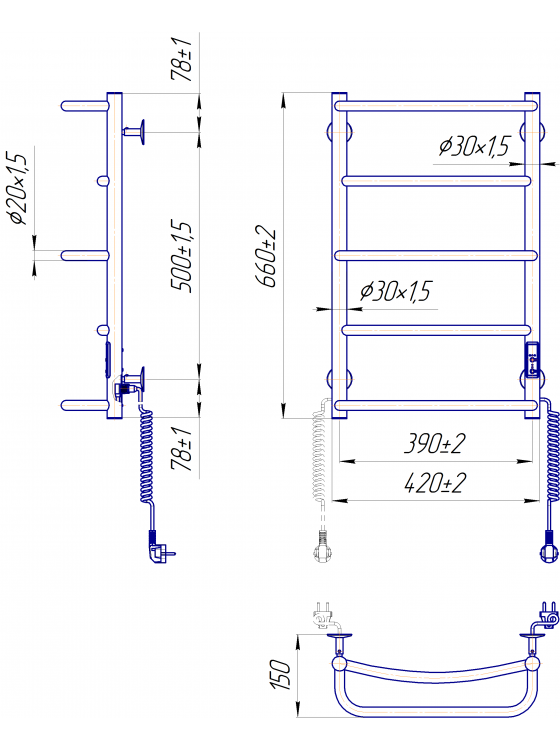 Інноваційна система - коннектор (підключення до розетки). Замість звичного шнура з фіксатором в конструкції вироби присутні роз'єми на обох стійках, що дозволяють підключити полотенцесушитель до мережі з будь-якого боку.