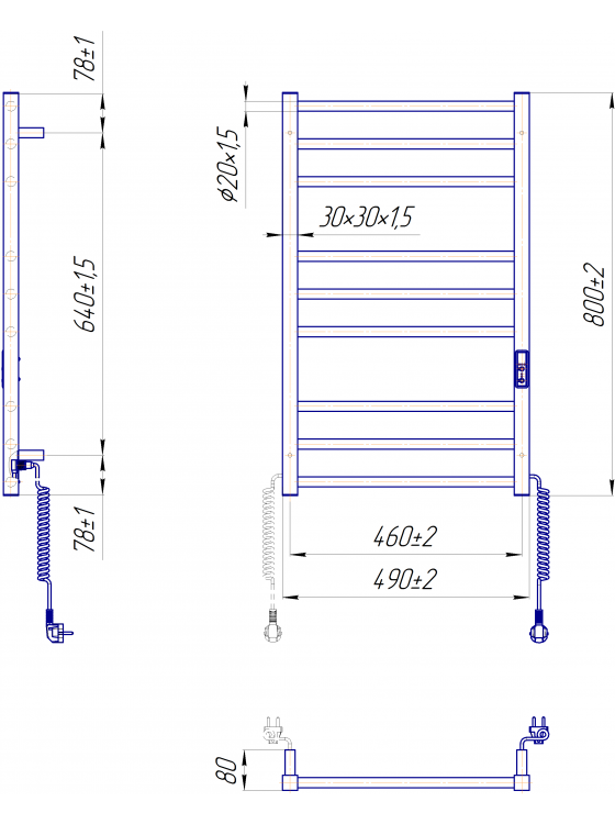 Електричний полотенцесушитель Преміум Класик-I 800x500 / 80 TR K зрегулятором часу і температури нагріву. Регулювання температури в трьох режимах: 40 ° С, 45 ° С, 50 ° С (± 5 ° С). Полотенцесушитель Преміум Класик-I виробничого підприємства Маріо, висотою 800 мм, шириною 490 мм. Номінальна потужність 100 W. Полотенцесушитель обладнаний таймером, який дозволяє встановити час нагрівання на 3 і 6 годин, або переключити режим роботи на постійний нагрів. Обладнаний коннектором - дозволяє підключати полотенцесушитель до електромережі як справа, так і зліва. Полотенцесушитель з коннектором повністю сумісний з комплектом прихованого монтажу.