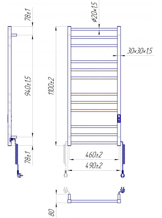 Інноваційна система - коннектор (підключення до розетки). Замість звичного шнура з фіксатором в конструкції вироби присутні роз'єми на обох стійках, що дозволяють підключити полотенцесушитель до мережі з будь-якого боку.