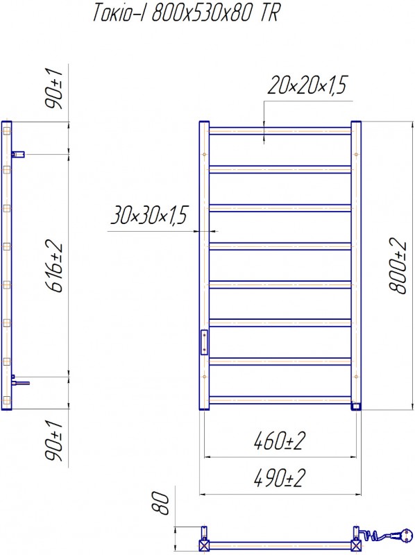 Електричний полотенцесушитель Mario Токіо-І TR 800х500 / 80 праве підключення