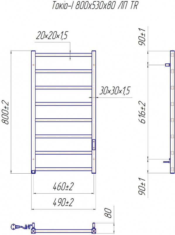 Електричний полотенцесушитель Mario Токіо-І TR 800х500 / 80 ліве підключення