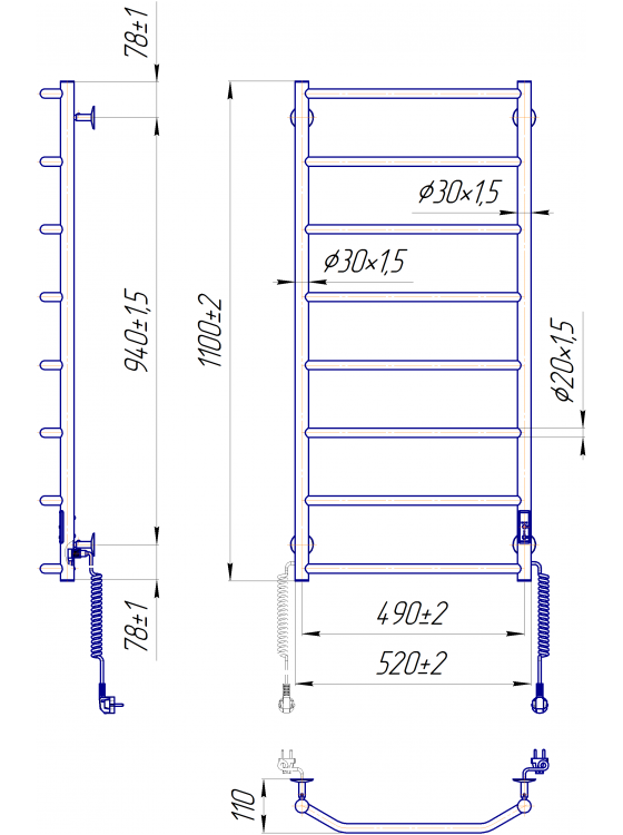 Інноваційна система - коннектор (підключення до розетки). Замість звичного шнура з фіксатором в конструкції вироби присутні роз'єми на обох стійках, що дозволяють підключити полотенцесушитель до мережі з будь-якого боку.