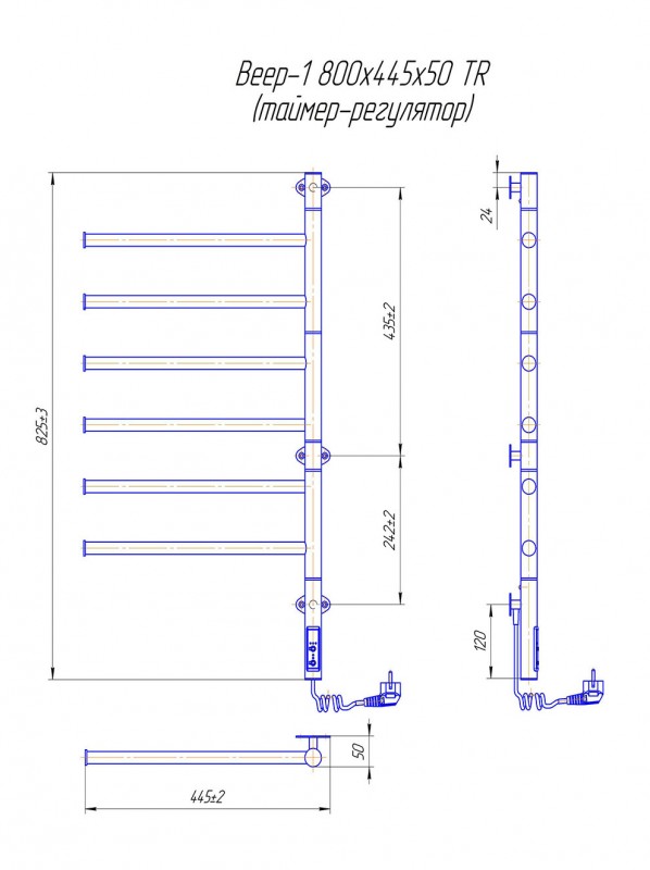 Електричний полотенцесушитель Mario Веер-I TR 800х445/55 поворотний 4820111355617