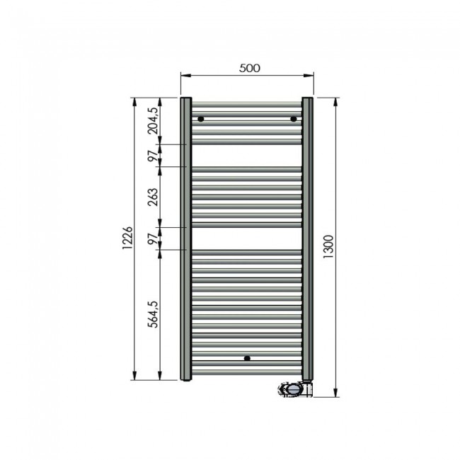 - Комплектація: полотенцесушитель сталевий розміром тисяча двісті двадцять шість х 500 мм, колір хром програмований ТЕН, колір хром, SC - спіральнийкабель з вилкою для підключення в розетку