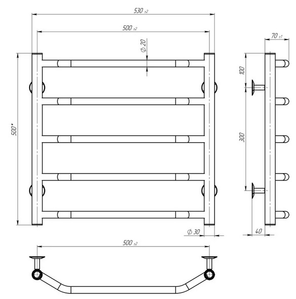 Електричний сушарка для рушників Deffi Трапеція П5 500х500 ліве підключення білий C.TR.50.50.5.E.W.L.5