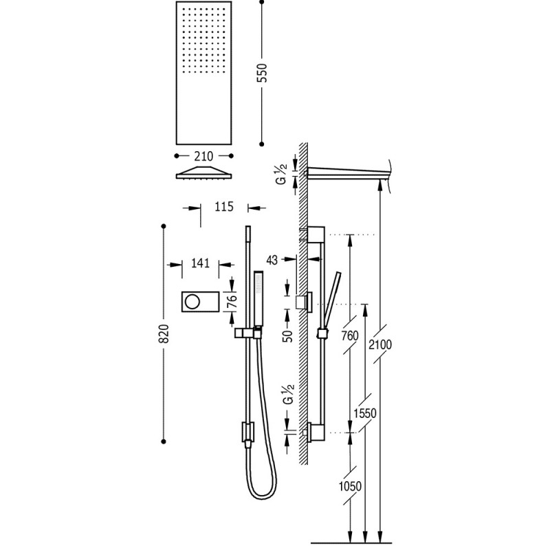 - Змінна штанга з настінним водозабором, довжина 760 мм