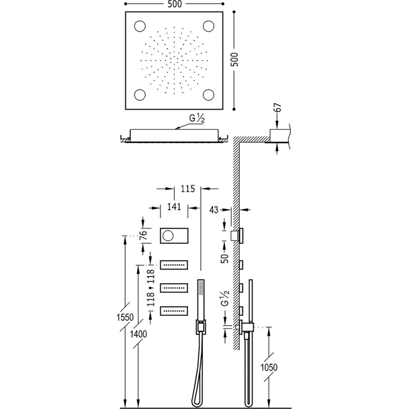 Електронна душова система прихованого монтажу Tres Shower Technology з термостатом і бічними форсунками хром / чорний