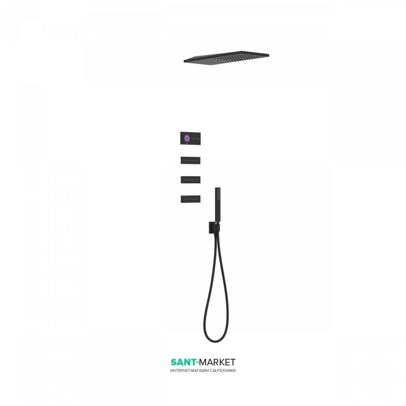Електронна душова система прихованого монтажу Tres Shower Technology з термостатом і бічними форсунками чорний матовий / чорний
