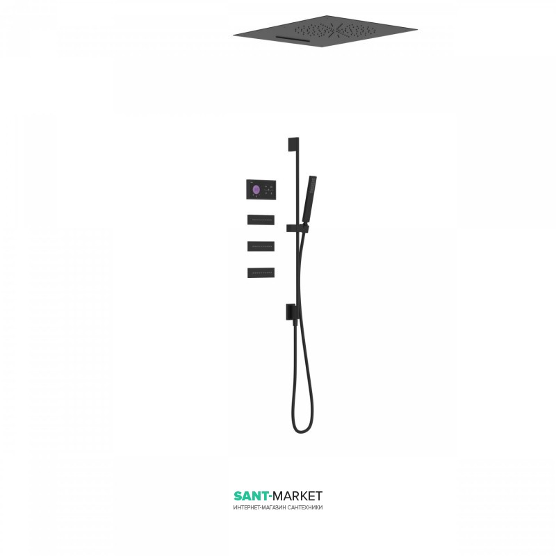 Електронна душова система прихованого монтажу Tres Shower Technology з термостатом і штангою чорний матовий / чорний