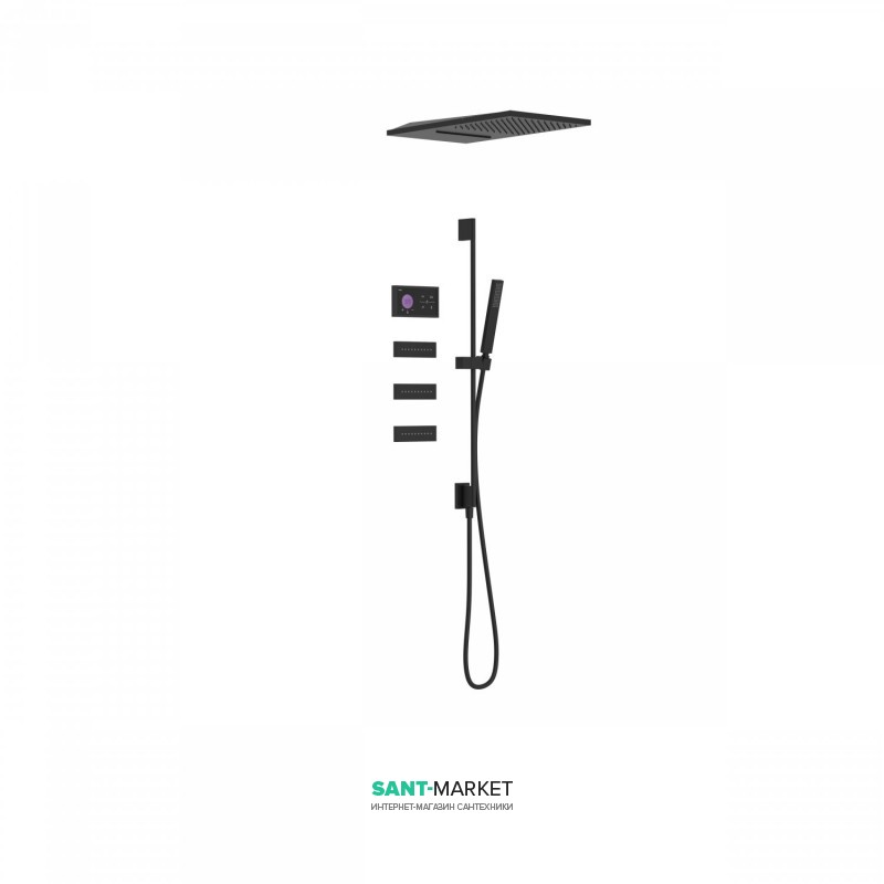 Електронна душова система прихованого монтажу Tres Shower Technology з термостатом і штангою чорний матовий / чорний