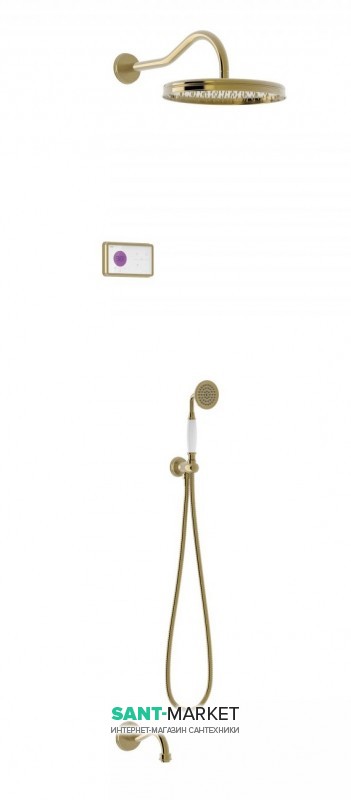 Електронна душова система прихованого монтажу Tres Tres-Clasic з термостатом і виливом для ванни зістарена латунь/білий 09226301LV