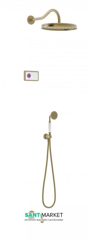 Електронна душова система прихованого монтажу Tres Tres-Сlasic з термостатом і зливом для ванни состаренная латунь матова / білий