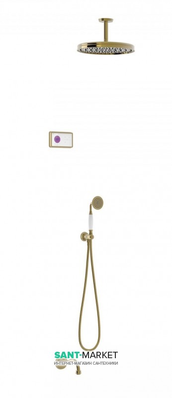 Електронна душова система прихованого монтажу Tres Tres-Сlasic з термостатом і зливом для ванни состаренная латунь / білий