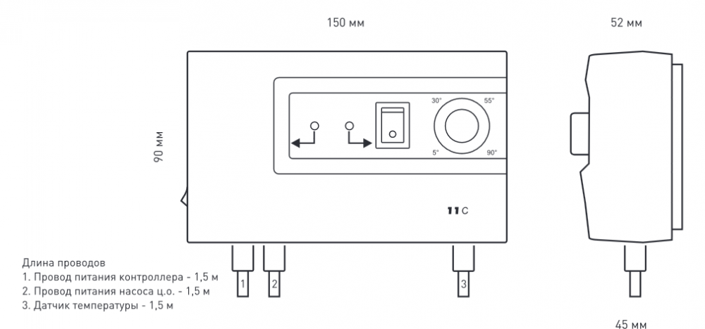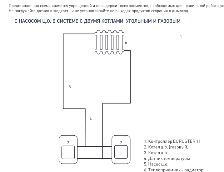 - Співпраця з циркуляційними памфами для твердопаливних або газових котлів (без системи керування насосами)