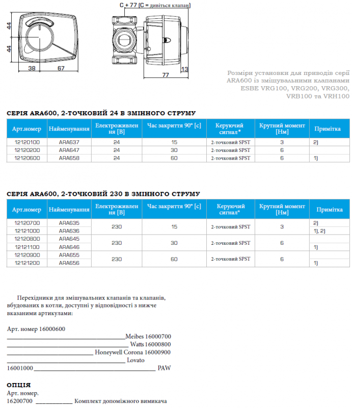 Електропривод Esbe ARA645 для роботи з ротаційними клапанами 230В 30 сек 2 точки 12120800