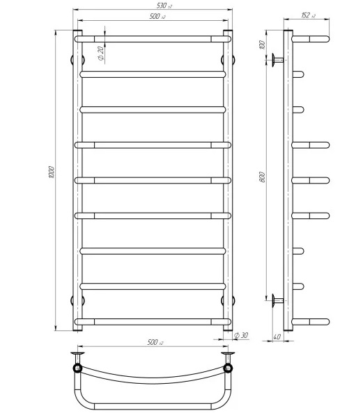 Електросушарка для рушників Deffi Аквамікс П9 500х1000 праве підключення JD03 хром C.AM.100.50.9.E.C.R.1