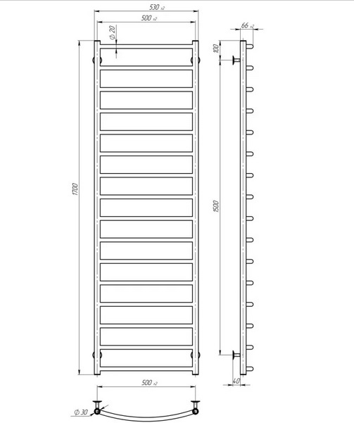 Електросушарка для рушників Deffi Класик П16 500х1700 праве підключення WD03 білий C.DK.170.50.16.E.W.R.3