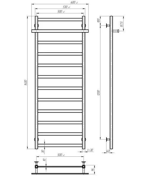 Електросушарка для рушників Deffi Nicole П12 500х1400 ліве підключення WD04 білий A.NI.140.50.12.E.W.L.4