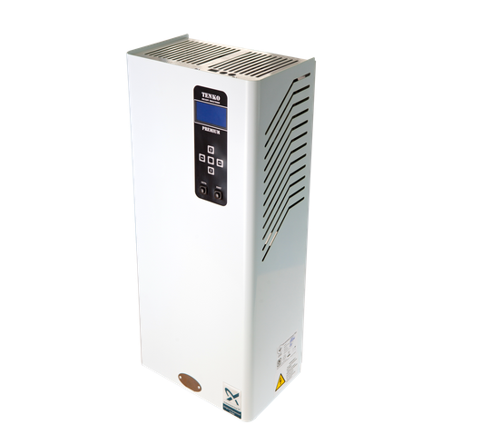 Електричні котли серії «Преміум» ТМ Tenko надають широкі можливості для управління роботою пристрою і забезпечують максимальний комфорт і автономність експлуатації при опаленні різних приміщень з максимальною площею 150 кв.м. Представлена лінійка обладнання відрізняється наявністю вбудованого мікроконтролера і програмної системи управління для повного контролю працездатності котла. Модель котла «Преміум» має цифровий дисплей для настройки і відображення сервісної інформації від трьох датчиків температури: кімнатного (проводового або радіо), датчиків на прямому і зворотному трубопроводах системи опалення. мікроконтролерздійснює управління блоків ТЕНів і реле, а вбудований програмний лічильник електроенергії веде статистику і дозволяє оптимізувати роботу. Безшумна робота при комутації забезпечується твердотільними реле з водяним охолодженням. Всі моделі електрокотлів «Преміум» виробництва компанії Tenko укомплектовані циркуляційним насосом фірми Grundfos (Данія), датчиком тиску, автоматичним відвідників повітря, запобіжним клапаном і недельно / добовим програматором, яким можливо керувати за допомогою wi-fi модуля. Дистанційне керування котлом здійснюється через будь-який браузер або додаток на Android.