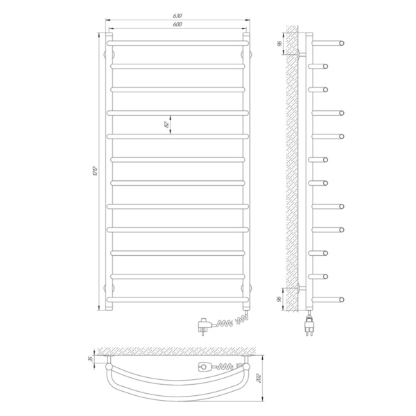 Електричний полотенцесушитель Laris Євромікс П12 Е 600х1200 мм правий
